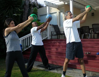Move the stability ball in a circular motion with both arms for one minute in each direction without pausing, and while maintaining perfect body.
